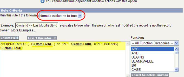 NOTE: ISCHANGED and PRIORVALUE functions can be used in workflow if the trigger type is set to “Every time a record is created or edited.”